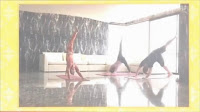 mostrado um vídeo da sessão matinal de yoga. Nele, apareciam Ayumi,